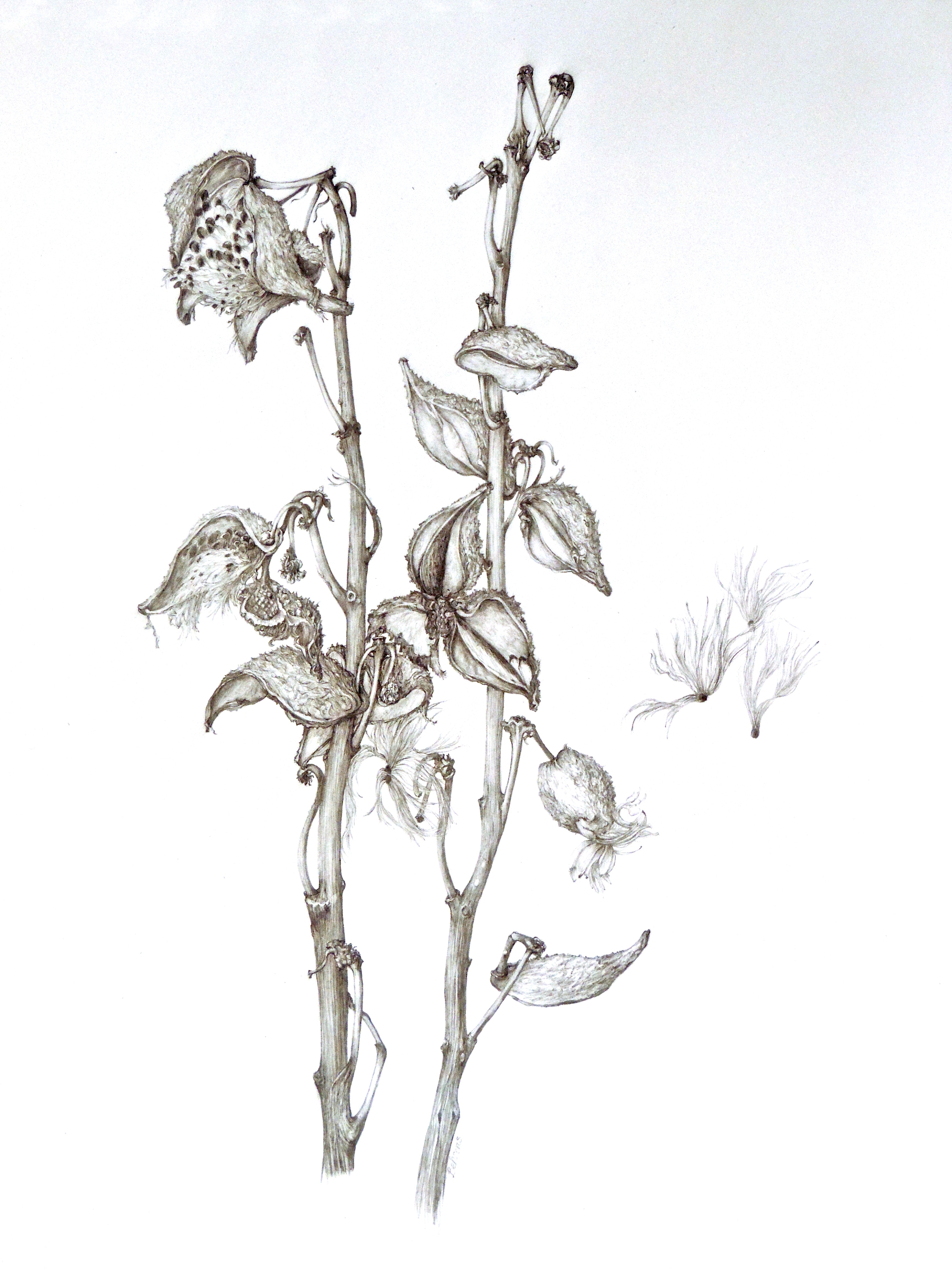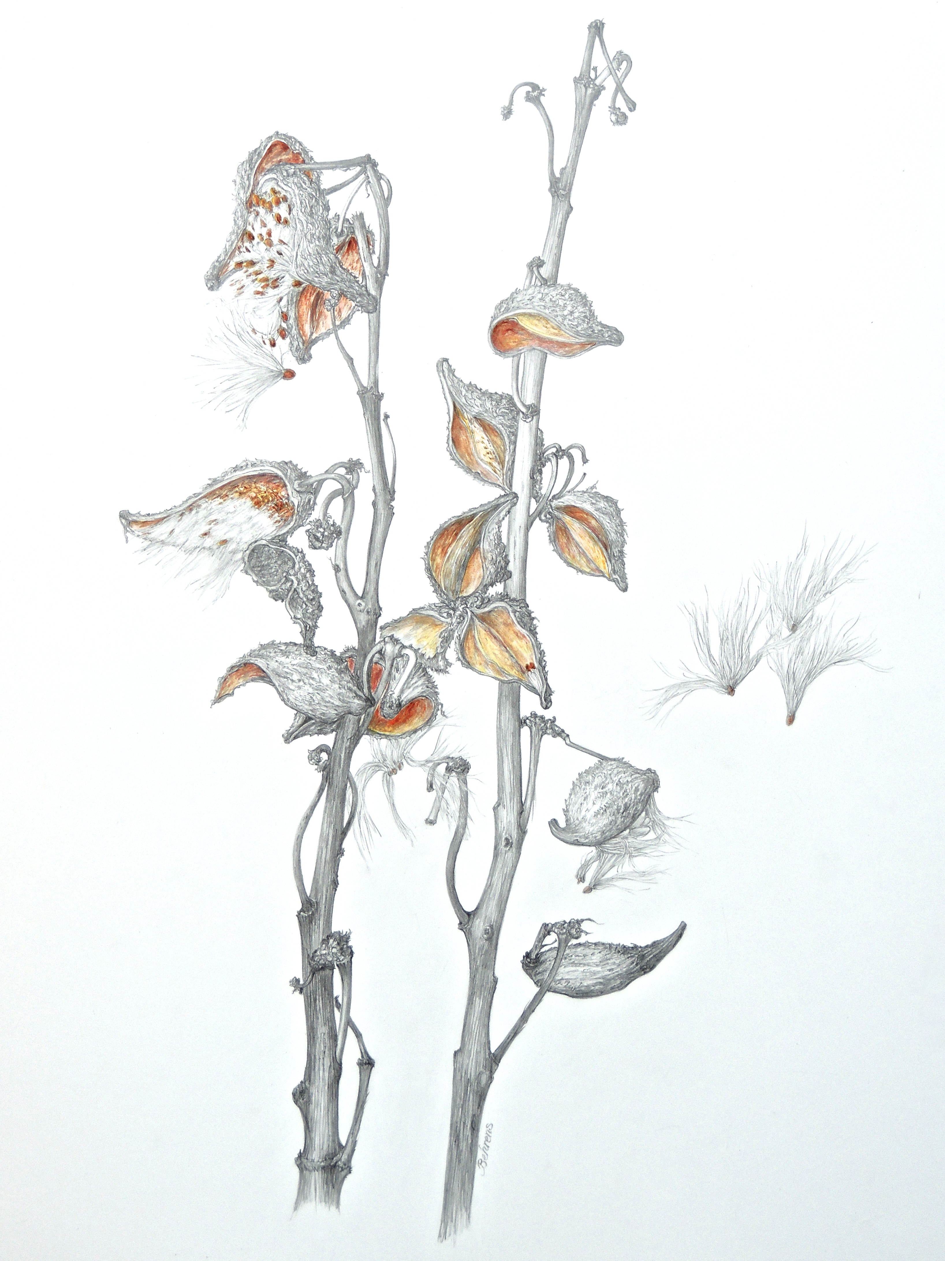 #807 Milkweed Graphite and Watercolor